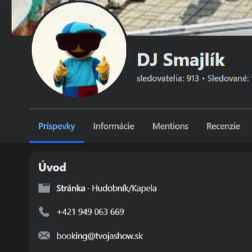 Dj Smajlík je unikátne hudobné vystúpenie. Smajlíkové najväčšie hity si spievajú všetky deti. Smajlík má v repertoári všetky žánre skladieb avšak každú show vieme prispôsobiť podľa vašich predstáv. Vystúpenie je vhodné pre všetky vekové kategorie.Vhodné na: deň detí, deň otvorených dverí, plesy, garden party, dni obce, hodové slávnosti, narodeninové oslavy či iné kultúrne podujatia